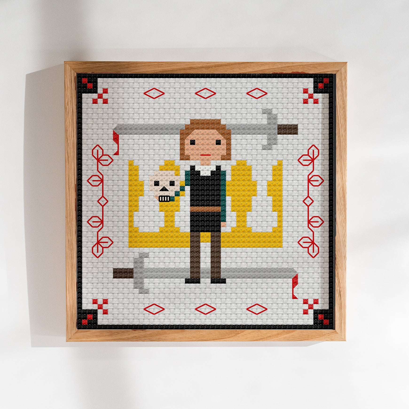 Hamlet is a striking cross-stitch design from the Literature Series, inspired by Shakespeare’s timeless tragedy of thought, action, and consequence. Featuring a stylized portrait of Hamlet holding the iconic skull, framed by bold decorative elements, this pattern captures the weight, symbolism, and drama of the play in a clean, modern stitched form.
